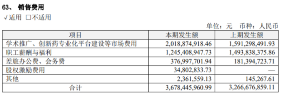 销售费用支出34.07亿元,同比20.86%,其中员工工资与福利、医学信息推广与市场教育费合计27亿元,占比大头。截止上半年,公司国际商业化团队规模超过 3,500 人。