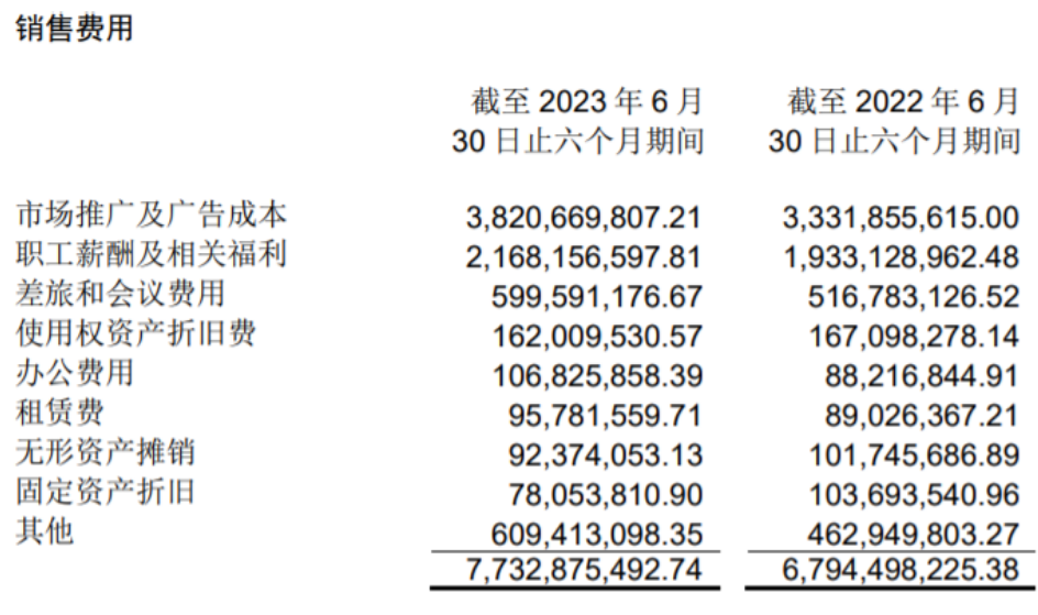 复星医药、恒瑞医药、百济神州、步长制药上半年销售费用分别为50.71亿元、36.78亿元、34.07亿元和33.79亿元,排2-5名。
