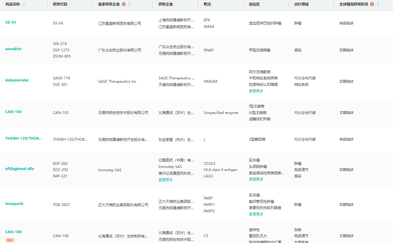 研发管线查询(部分)