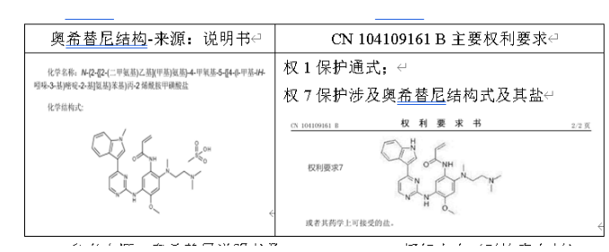参考来源:奥希替尼说明书及CN 104109161 B授权文本(对比表自制)