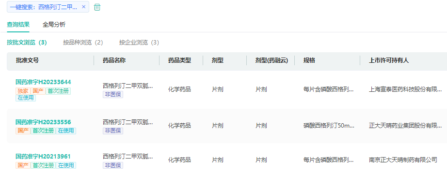 截图来源:药融云中国药品批文数据库