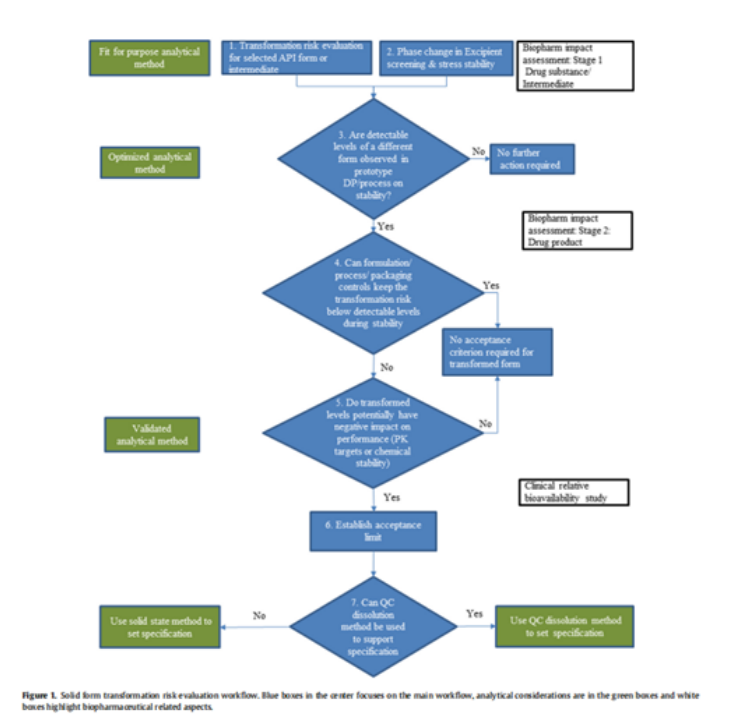 但是要如何始终如一的保持优势晶型,则需要研发人员要充分了解评估晶型转化是否存在风险,或者某种程度的转化是否可以接受,需要重点考虑以下因素,包括: 1)对晶型转化机理的深刻理解,从而可以制定控制策略;2)检测和量化晶型转化的能力; 3)预测和测试晶型转化对安全性和有效性的影响的能力,以证明晶型控制策略的合理性。