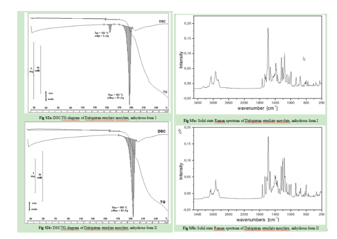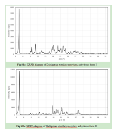 在铣削或压缩等机械应力的影响下,无水形式I向无水形式II的转变也可能发生。对于甲磺酸达比加群酯,在结晶不能直接满足指定粒度分布的情况下,研磨是一个可选的工艺步骤。因此,铣削必须被视为另一种可能的来源,以形成热力学上更稳定的无水晶型II。另一方面,通过压缩向无水晶型II的转化可以忽略不计,因为在达比加群酯胶囊的制造过程中不包括压缩步骤,是将原料药直接喷在酒石酸丸上。