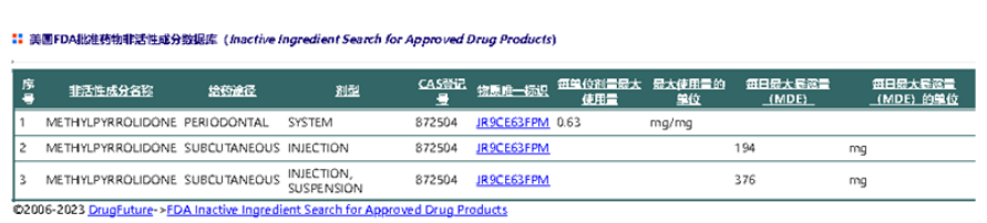 表3:美国药典登记NMP最大剂量