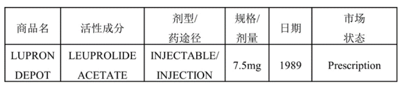 表1: LUPRON--- FDA批准的第一个长效注射剂