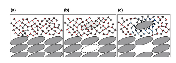 图3a描述了溶剂-溶剂,溶质-溶质分子间的分离状态以及其与其他类型的分子的相互作用;图3b描述了溶质分子转移到溶液的过程,首先溶质分子需要从晶格中脱离,即要打破晶格能,脱离溶质分子之间的作用力,然后溶剂分子要空出容纳溶质分子的空间,即离解溶剂分子之间的相互作用(空化能);图3c溶质分子进入溶剂后,溶剂分子与溶质分子将发生稳定的相互作用,这个过程需要的能量称之为溶剂化能(溶剂通常为水性溶剂)。