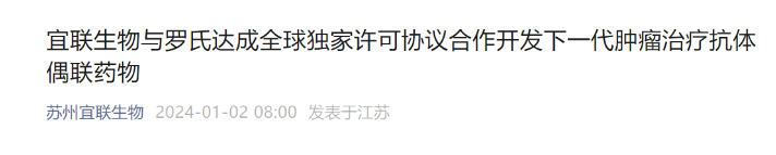 2024年1月2日,宜联生物宣布已与罗氏(Roche)达成全球合作和许可协议,双方将合作开发靶向间质表皮转化因子(c-MET)的下一代抗体偶联药物候选产品YL211(c-MET ADC),用于治疗实体瘤。