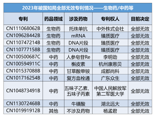 进一步查看,这24项全部无效的专利,13项是化药领域、4项涉及生物药、6项涉及中药还有1项不涉及具体药物。