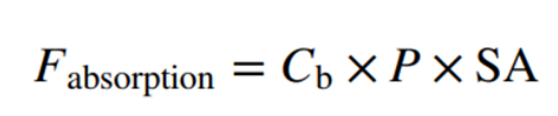 Fabsorption是游离溶解的活性药物成分(API)分子吸收量,与P渗透性,Cb未搅拌水层中药物的游离浓度,SA可用于吸收的表面积成正比。