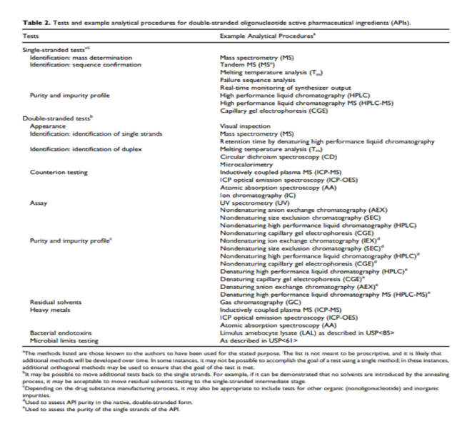 表2 双链寡核苷酸活性成分的检测项目和分析方法[7]
