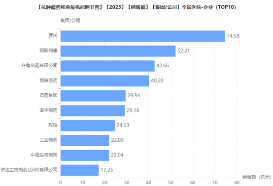 02抗肿瘤药与免疫机能调节药院内市场:罗氏稳居第一,齐鲁、恒瑞领衔国内药企