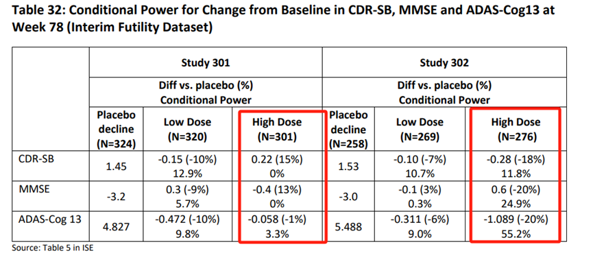 (d) “当将试验 301 和试验 302 的探索性分析结果与试验 103 及其对阿尔茨海默病病理生理学的药效学作用一起考虑时,您是否认为试验302的结果证明了 aducanumab 作为治疗药物的功效?阿尔茨海默病的治疗方法?”;表决结果:0 票同意,10 票反对,1 票弃权;由此得知,大部分专家委员认为aducanumab没有足够的证据证明有效。