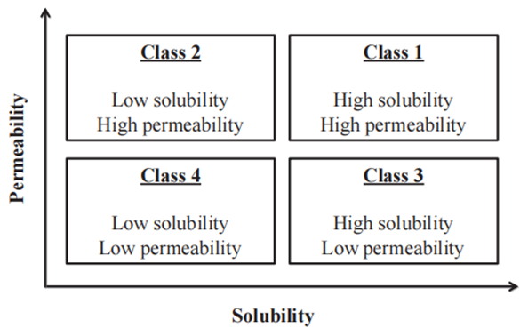 Amidon等人引入了被称为生物药剂学体系(BCS,世卫组织研究了不同药物的溶解度和渗透性(图1)。基于药物溶解度和GI渗透性,提出了将体外药物溶出度和体内生物利用度关联起来的BCS。这些是控制药物吸收速率和程度的基本参数。该系统使用转运模型和人体渗透性结果来估计体内药物吸收,以说明溶解度和渗透性对药物吸收的首要重要性。