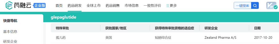 Glepaglutide是一种长效稳定的GLP-2(胰高血糖素样肽-2)类似物,半衰期达88个小时,设计为每周两次注射10 mg剂量,采用自动注射器,旨在减少或消除短肠综合征(SBS)患者对肠外营养支持(PS)的需求。SBS是一种罕见的、慢性和衰弱的疾病,导致肠道吸收能力受损,该病与重大的医疗并发症有关,包括肝肾衰竭、代谢并发症、慢性疲劳,以及危及生命的感染,在美国和欧洲影响多达4万人。3期临床研究显示,与安慰剂相比,Glepaglutide在第24周显著降低了每周肠外营养支持(PS)的量。药融云数据显示,美国FDA已授予Glepaglutide用于治疗SBS的孤儿药资格。2023年12月22日,Zealand宣布向美国FDA递交Glepaglutide的NDA申请,用于治疗依赖肠外营养支持的短肠综合征成人患者。