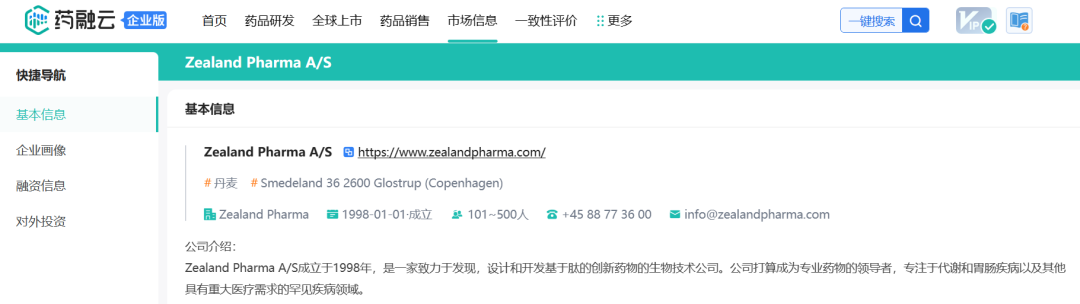 药融云数据显示,丹麦生物技术公司Zealand Pharma A/S专注于创新多肽药物的发现、设计和开发,产品线主要集中于胃肠道和代谢疾病,并已将临床开发资产扩展到了罕见病领域。该公司的合作伙伴包括赛诺菲、诺和诺德、勃林格殷格翰等知名药企。Zealand被称为是减重领域的“关键参与者”。