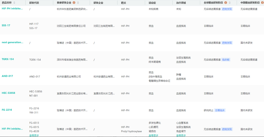 其中,进度最快的是康哲药业的desidustat,在国内处于III期临床阶段。三生制药的SSS-17、东阳光药业的HEC-53856均处于2期临床试验阶段,恒瑞医药DDO-3055处于1期临床阶段。