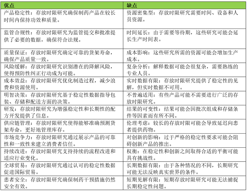 稳定性研究在制药行业中扮演着重要角色。药品产品的稳定性研究有所有的指导方针,如国际协调会(ICH)、美国食品和药物管理局(USFDA)、欧洲药品管理局(EMEA)、世界卫生组织(WHO)等。存放时限研究数据应该确保中间产品/待包装产品的最大允许存放时限。