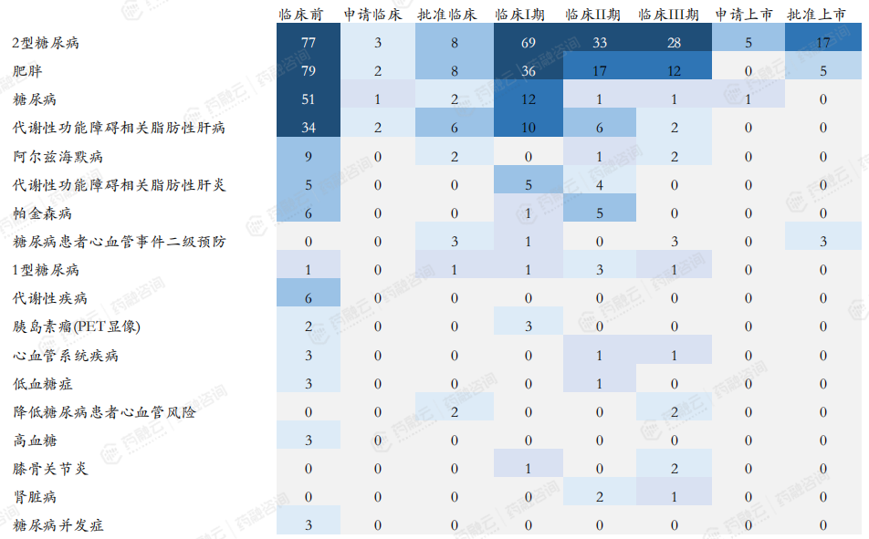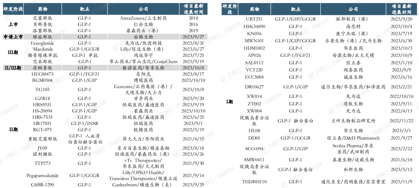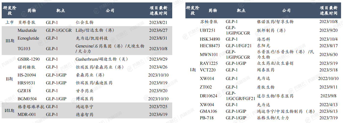 国内企业GLP-1新药(包含lisence-in)在2型糖尿病适应症的研发竞争格局。