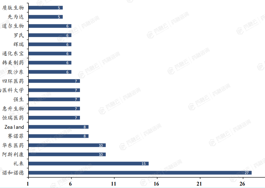 各公司在国内GLP-1药物研发数量排名