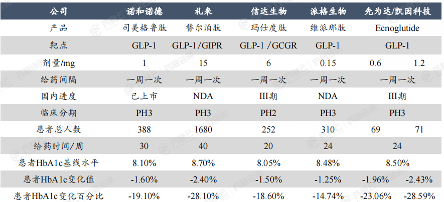国内糖尿病领域,几款进度最快的 GLP-1药物临床数据对比