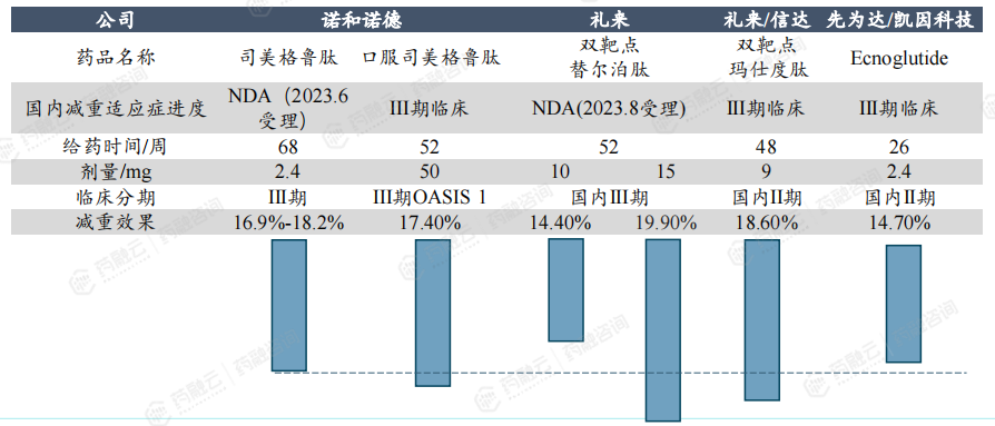 国内减重领域,几款进度最快的 GLP-1药物临床数据对比