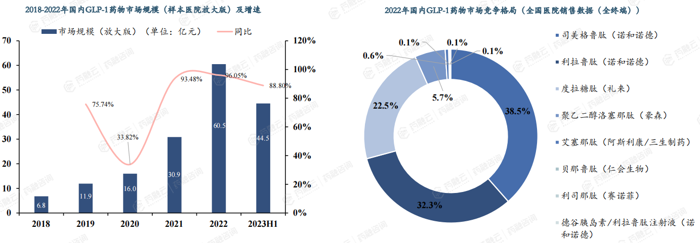国内GLP-1市场正在快速扩容。主要适应症为超重/肥胖和2型糖尿病,一类新药,改良药和类似药齐发力。