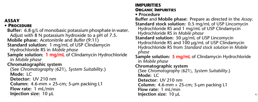 图 3 USP中盐酸克林霉素HPLC参数(含量和有关物质)
