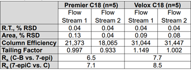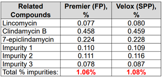 盐酸克林霉素的含量测定和有关物质方法除供试品检测浓度不同外,其他参数均一致。Evgenia Barannikova等人用Shimadzu双进样系统对比了两个色谱柱对于分析盐酸克林霉素含量和有关物质的性能。以下为具体的液相参数和实验结果对比。