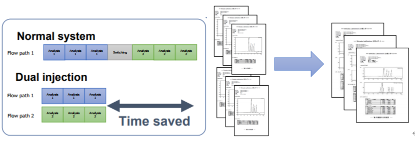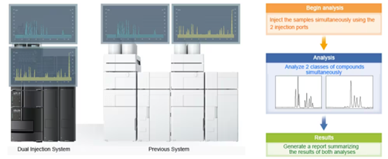双进样系统的Nexera UHPLC可显著提高实验室效率和工作流程,其通过将测试通量翻倍并将仪器占地面积在实验室中减少到一半,同时测试结果可以整合,减少了图谱数量从而提高效率。