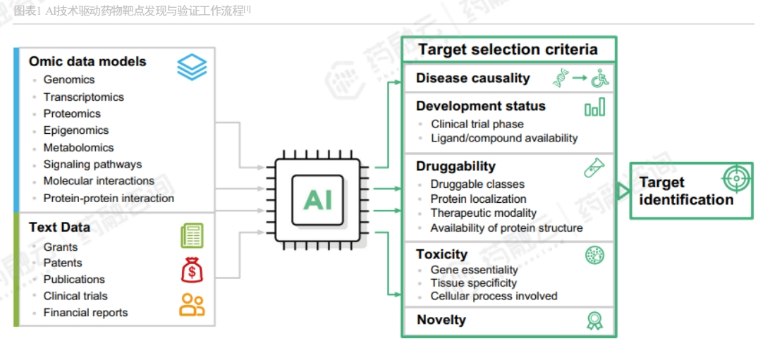 随着微阵列、RNA-seq和高通量测序技术的飞跃,高校、研究机构及企业实验室积累了海量的生物医学数据,使药物发现迈入生物大数据时代。深入解析这些数据,药物研究焦点转向靶向药物发现,利用AI技术挖掘与疾病密切相关的靶点,进而发现相关基因产物及对应小分子。