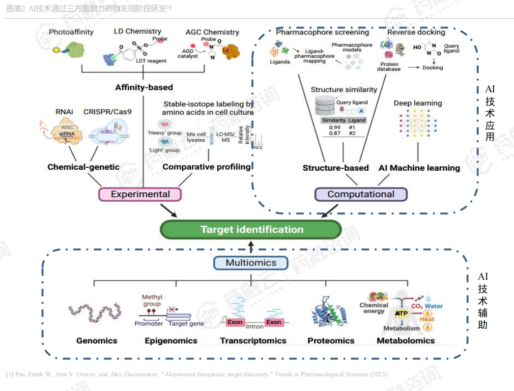 在靶点发现中,实验方法受限于通量和成本,而多组学分析和AI计算方法则表现出高效性。多组学方法整合多源数据,揭示疾病关键靶点;AI计算方法借助机器学习和数据挖掘技术,从化合物库中快速筛选潜在药物。这些方法在药物研发中扮演关键角色,并将持续发挥重要作用。