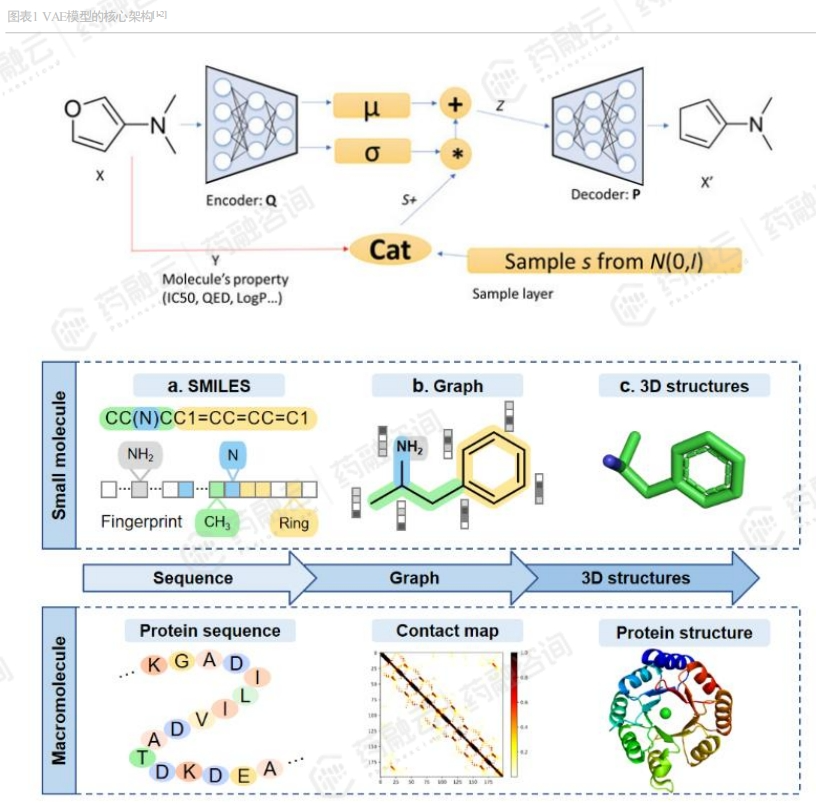 进阶AI生成模型:基于变分自动编码器(VAE)的生成模型VAE已成为复杂数据分布的无监督学习最流行的方法之一。VAE模型能够完成小分子的全新设计和肽序列的生成。VAE有许多不同的变体,但其核心架构始终不变(如下图所示)。