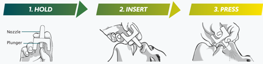 实际给药过程中发现诸如头部姿势、给药方式(剂型以及器械)、体积在内的多种因素会影响药物在鼻腔的沉积以及进入CNS的途径。临床前以及临床实验建议采用仰卧位的姿势给药(小鼠:~5μL,大鼠:~50μL),2020年FDA批准治疗癫痫地西泮(商品名:VALTOCO)喷雾的产品说明见下图。尽管动物与人的鼻腔载药体积、嗅觉占比表面积等存在差异,但是相似的药物转运吸收途径也为临床试验提供了一定依据。