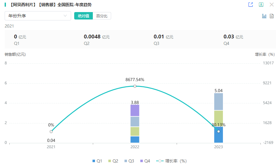 阿贝西利片医院端市场销售趋势