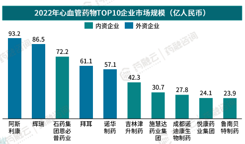 中国心血管系统药物市场竞争格局,阿斯利康位居榜首