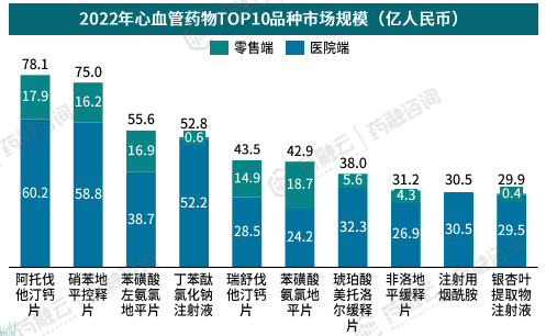 2022年心血管药物TOP10品种市场规模