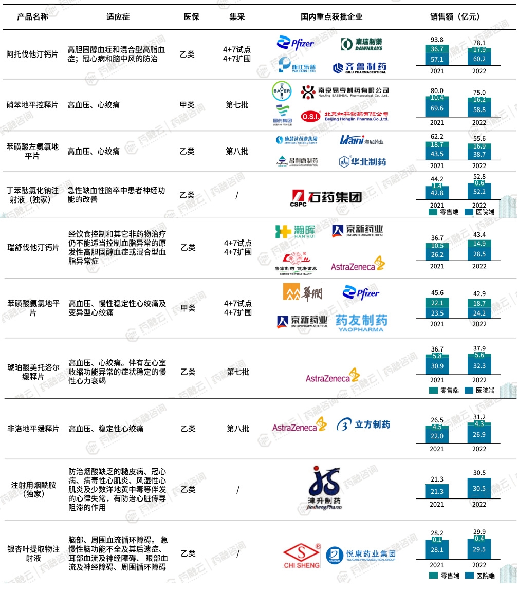 2022年心血管药物销售额TOP10品种分析