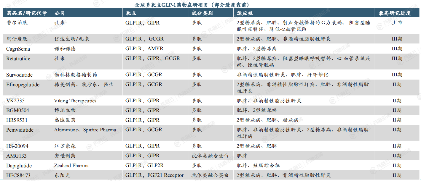 3.GLP-1药物发展趋势三——多靶点协同