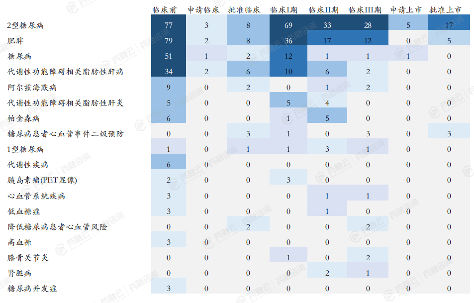 国内企业GLP-1新药(包含lisence-in)在2型糖尿病适应症的研发竞争格局