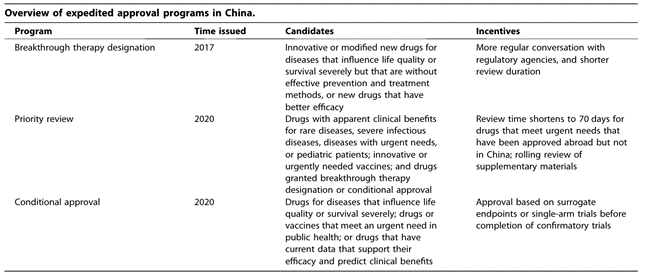 中国推行实施三个加速审批路径:包括2017年的优先审评、2020年的突破性疗法认定以及附条件批准。