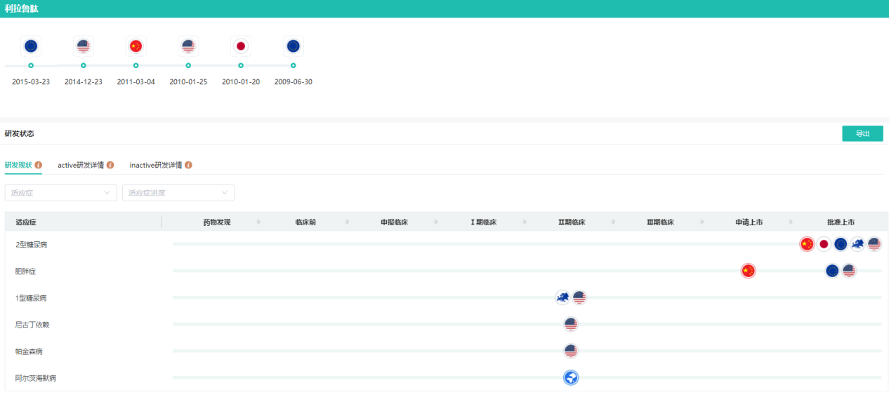 通过药融云数据库,可查询利拉鲁肽全球研发现状