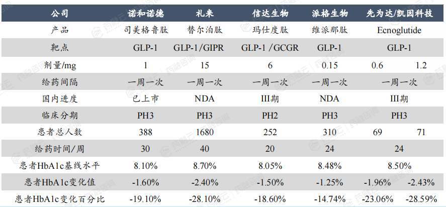 国内糖尿病领域,几款进度最快的 GLP-1药物临床数据对比