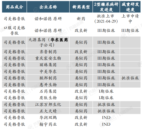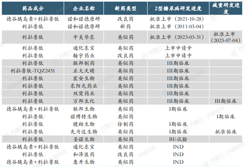 国内企业布局的利拉鲁肽和司美格鲁肽改良药/类似药及其研发进度