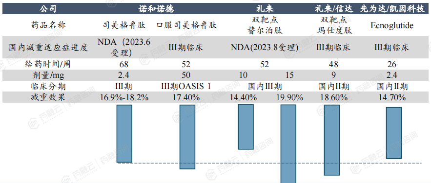 国内减重领域,几款进度最快的 GLP-1药物临床数据对比