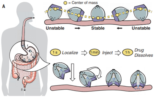 图10:口服给药后可摄入的自定向毫米级施药器(该装置可以自主地将自己定位到肠粘膜上)