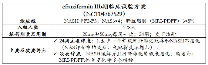 目前Efruxifermin已经完成两项临床IIb临床研究,正在进行一项为期36周的NASH伴肝硬化的临床IIb临床研究,另外两项III期临床研究也预计在2023年下半年启动。