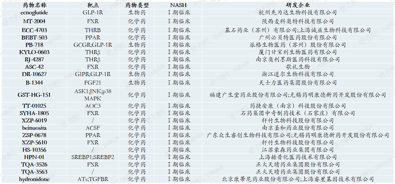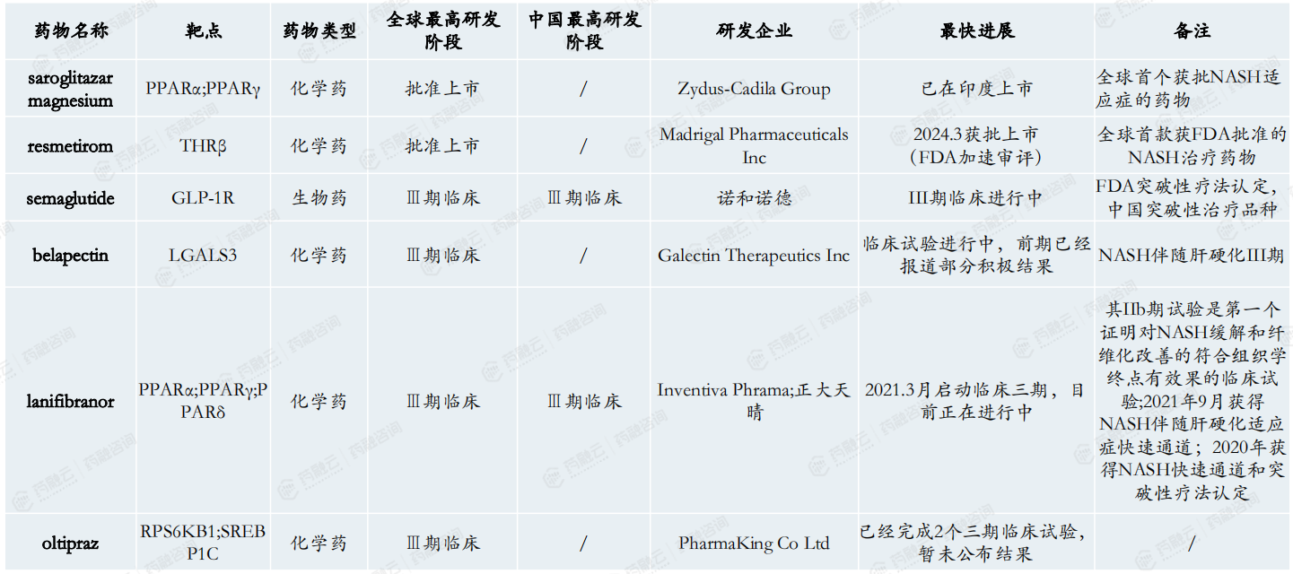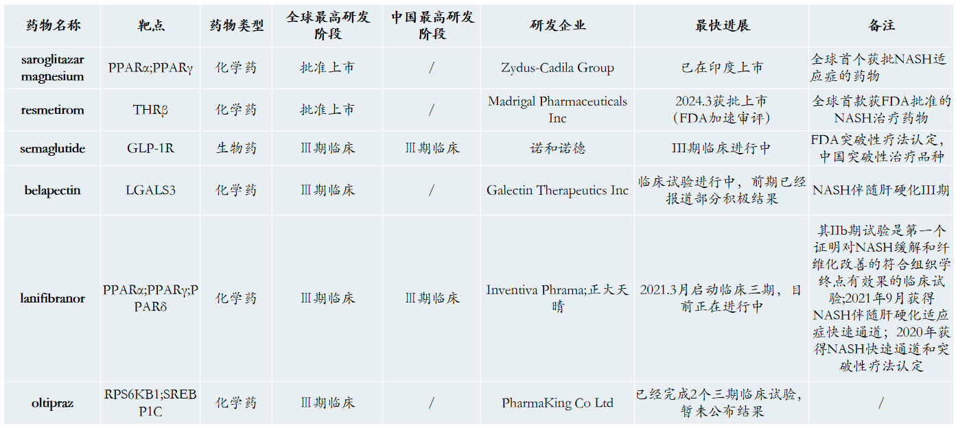 中国多个药企布局NAFLD/NASH,整体开发进度落后于全球。