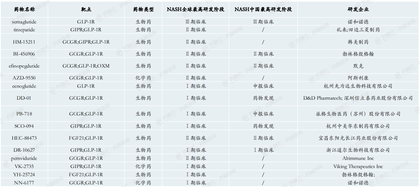 GLP-1R优秀的降糖减重效果也成为NASH的热门靶点。
