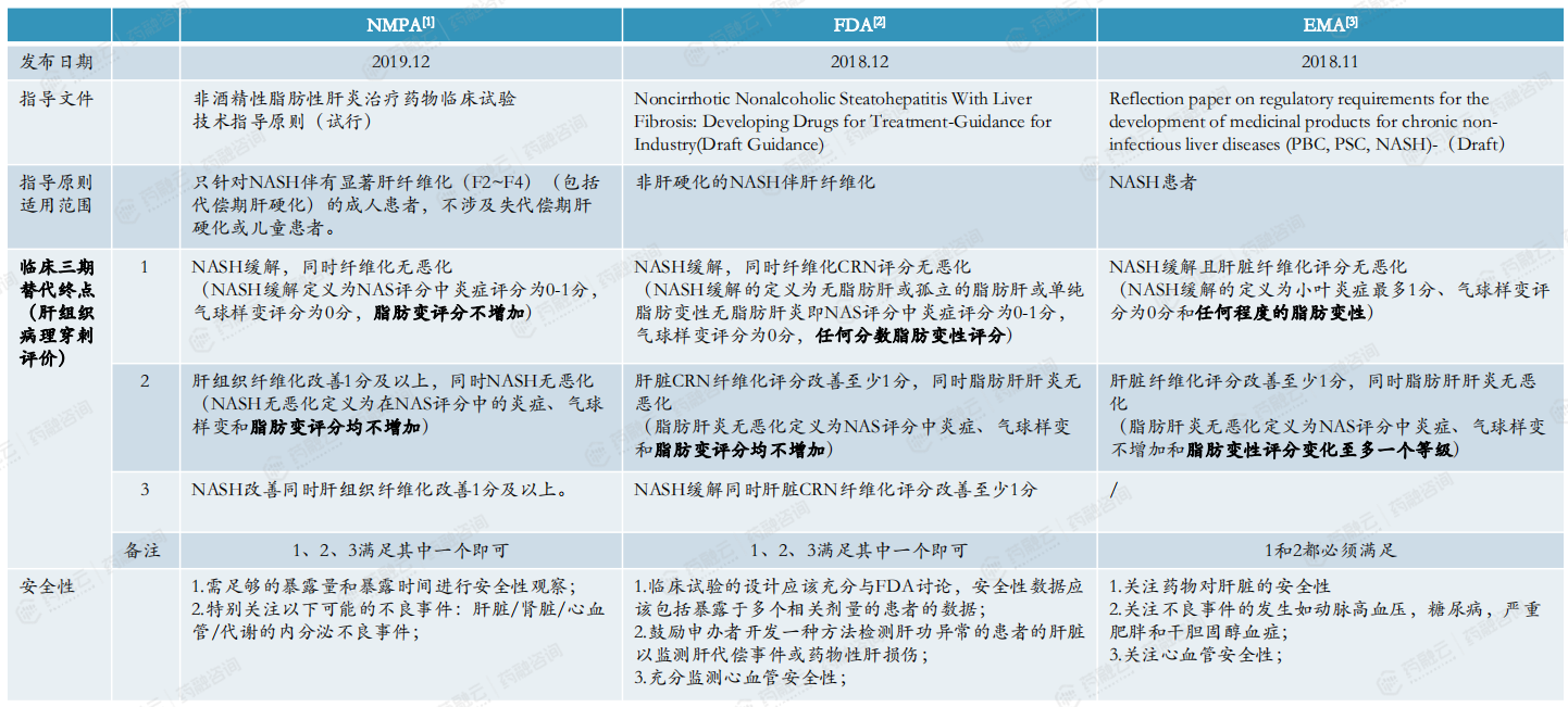 NMPA、FDA和EMA都规定NASH晚期确证性临床试验须使用肝组织活检进行疗效确证。