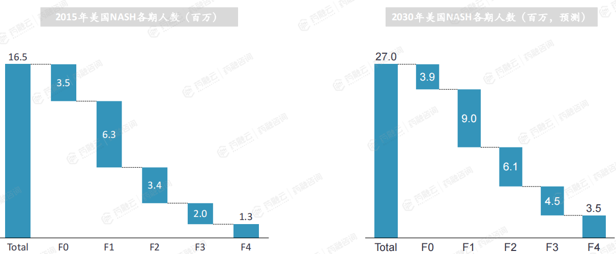 自先前的前瞻性患病率研究发表以来,临床显著纤维化(2期或更高阶段纤维化)的患病率增加了>2倍。预计到2030年,晚期肝纤维化(定义为桥接纤维化(F3)或代偿性肝硬化(F4))患者将不成比例地增加。预计到2030年与NASH肝硬化相关的肝失代偿、HCC和死亡的发生率预计也将增加2- 3倍。